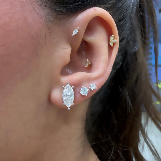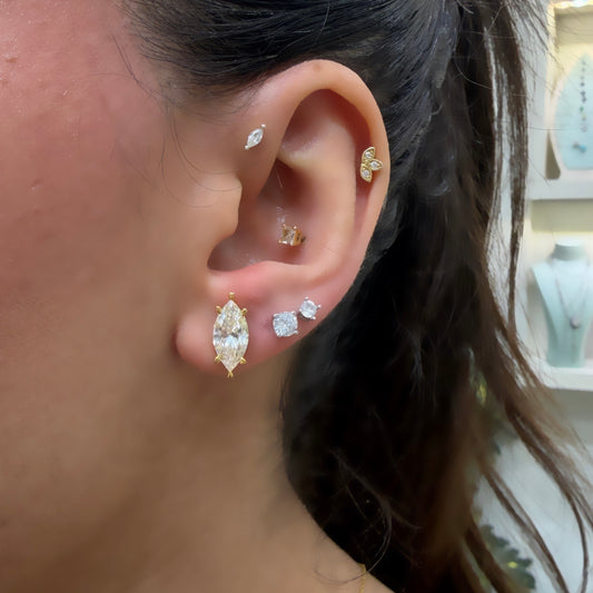 Taşlı Montür Mozanit Markiz Küpe