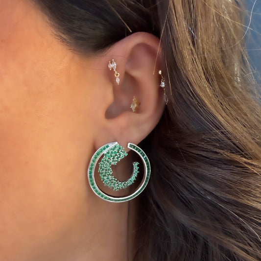 Yeşil Taşlı Tasarım Yuvarlak Küpe