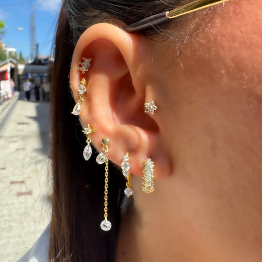 Çoklu Baget Taşlı Küpe