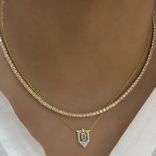Serenay T Necklace with Baguette Stone
