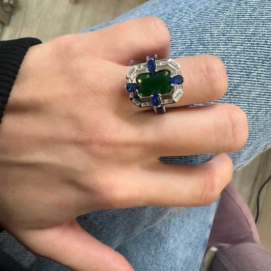 Blue - Green Baguette Stone Ring
