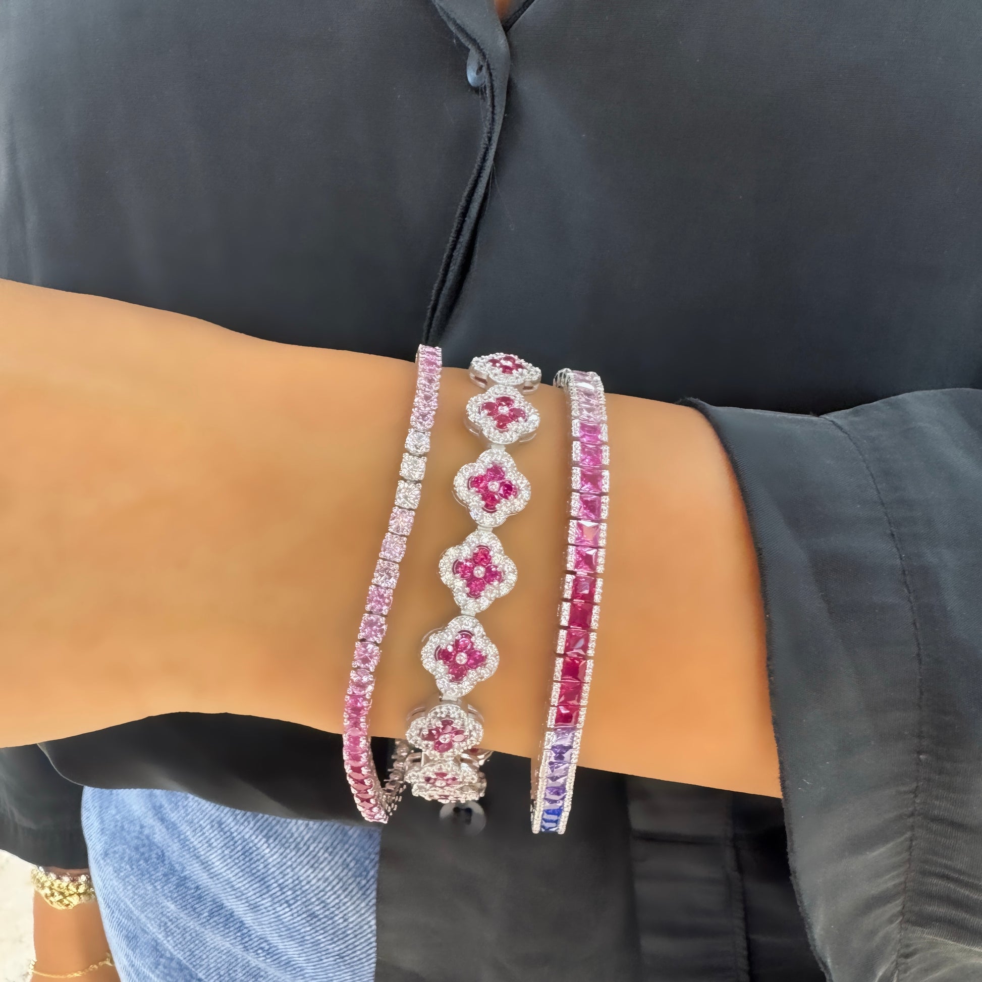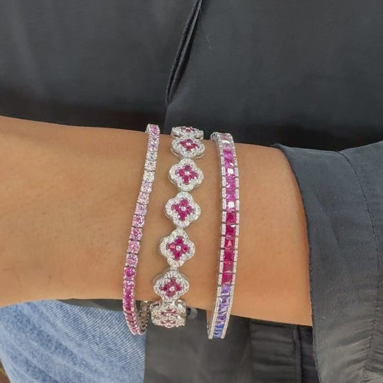 Fuşya Yonca Taşlı Bileklik