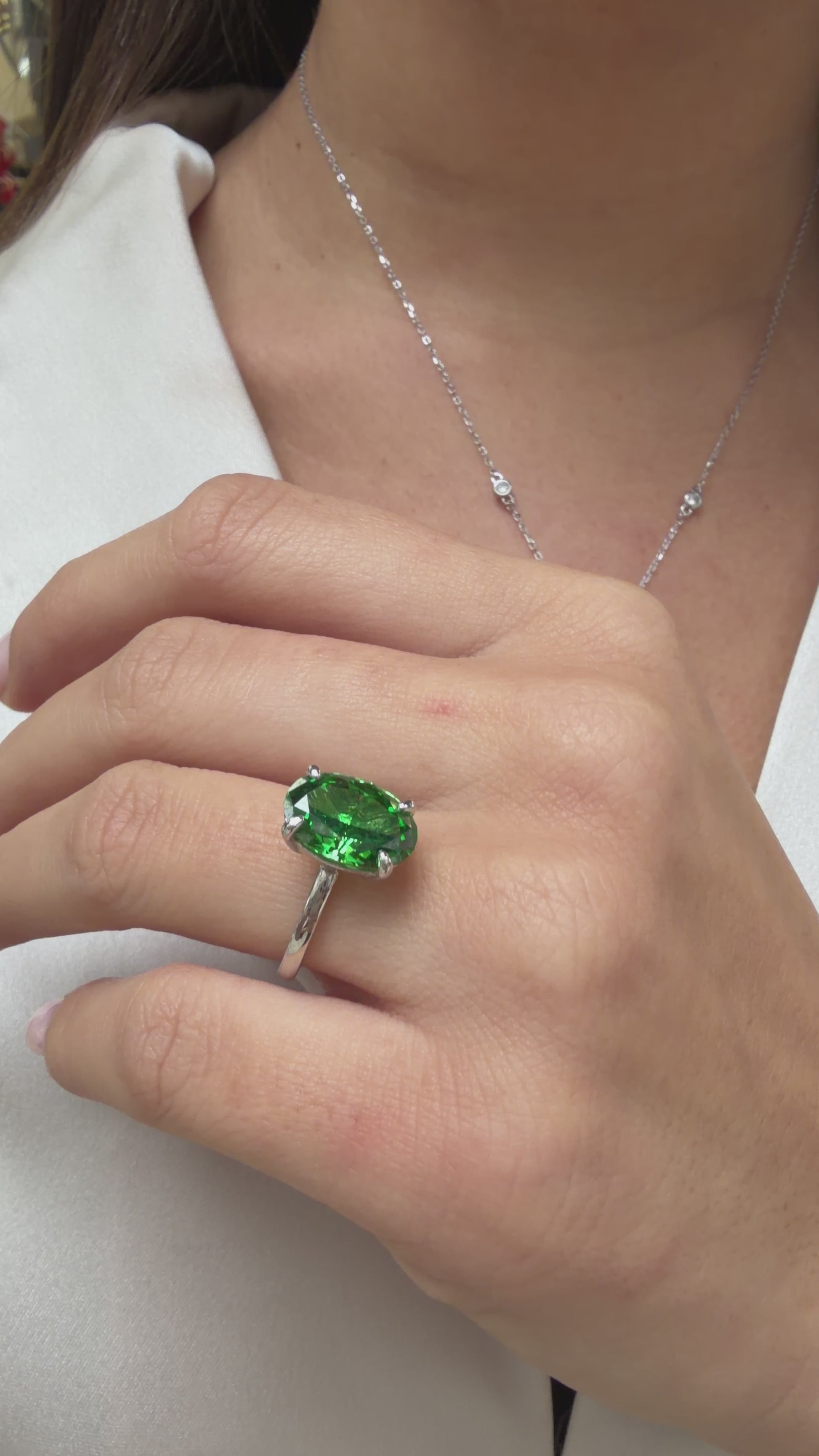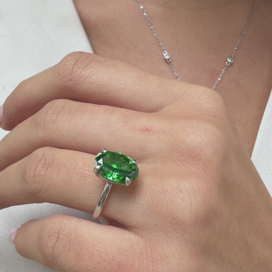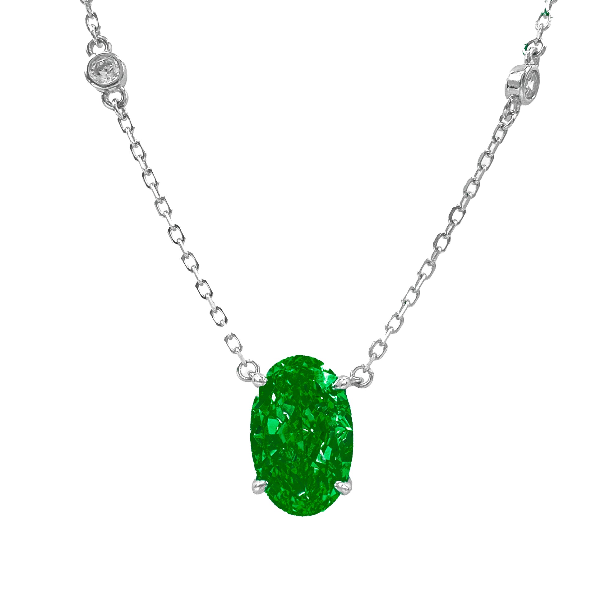 Yeşil Ice Cut Taşlı Oval Kesim Kolye