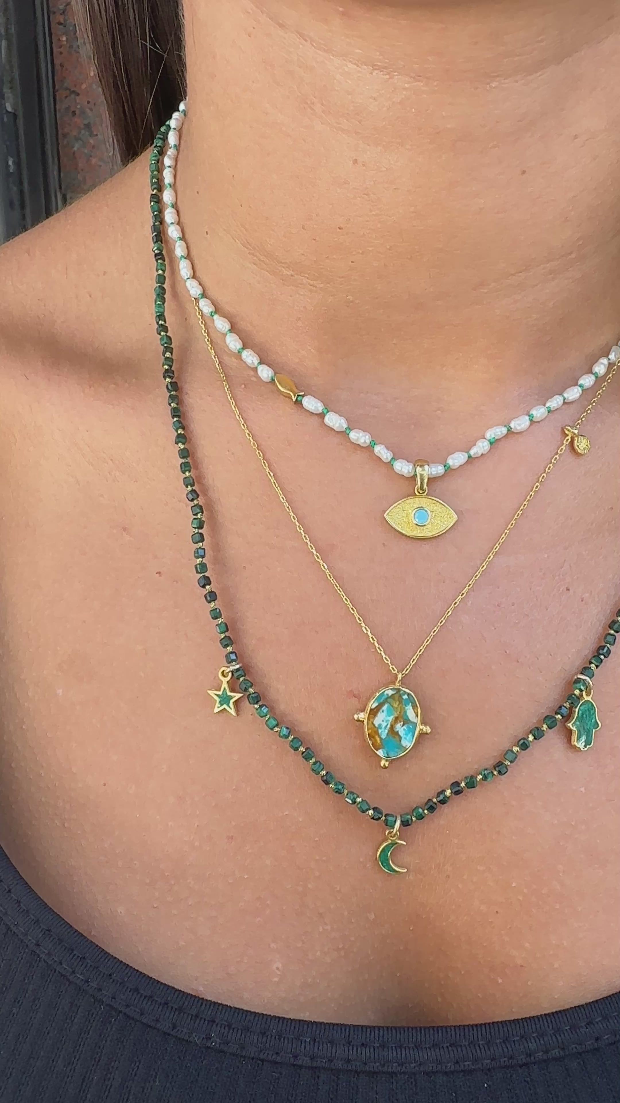 Yeşil Taşlı Figürlü Doğal Taş Kolye